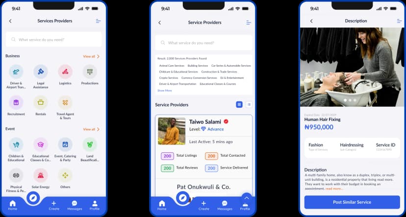 Our solution is designed to cater to service providers, including electricians, plumbers, cleaners, and more, allowing them to create detailed profiles that highlight their skills and services. Service providers can efficiently manage bookings, track jobs, and communicate directly with landlords or property managers through the platform, ensuring smooth property management. Automated notifications, secure payment processing, and a rating system ensure timely services and customer satisfaction. Additionally, the app helps clients locate nearby providers, while the service history feature promotes accountability and aids in long-term maintenance planning. This all-in-one solution improves efficiency for both service providers and property owners.